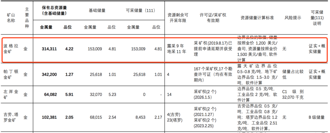 紫金礦業(yè)發(fā)布公司2019年財(cái)報(bào)顯示,波格拉金屬儲(chǔ)量為314.31噸,可采儲(chǔ)量為153噸,剩余開(kāi)采年限為露采9年、地采11年。波格拉金礦也是公司黃金板塊最大利潤(rùn)來(lái)源。2019年,這一板塊營(yíng)業(yè)收入為27.86億元,凈利潤(rùn)為5.27億元。
